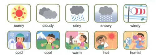 授業の記録も少しずつ。 2年生の2学期は「天気」のページから。今回のミッションは気象予報士になり、世界各地の天気を伝えること、としました。 最初に天気に関する形容詞を4人組の小グループで確認。3分間で、読み方と意味を確認して、練習させました…