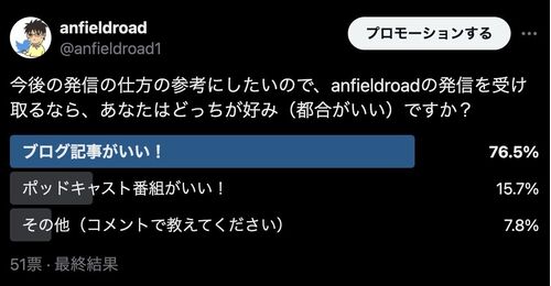 昨日のエントリ後、Twitterでもアンケートを取ってみたのですが、結果はこんな感じでした。 思ったよりブログ派が多くてびっくりしたのですが、Twitter界隈の方々だからですかね。文字で情報を吸収する方がいい人たちかも知れません。一応両方とも続けてくつ…